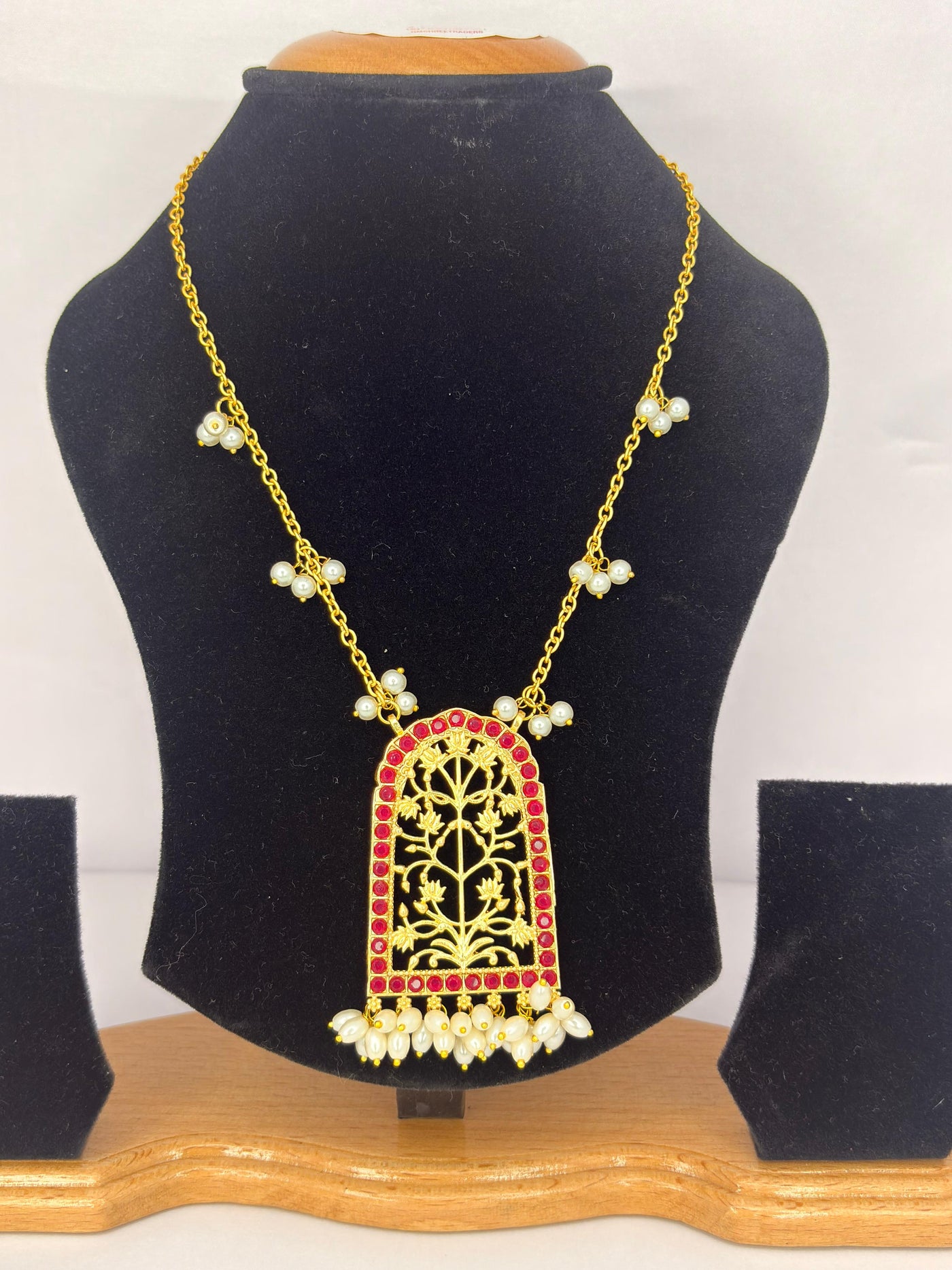 Unveil subtle elegance with Kaia, a minimalist pendant necklace featuring intricate lattice design, delicate pearls, and a touch of green enamel — a graceful statement of heritage and modern charm.